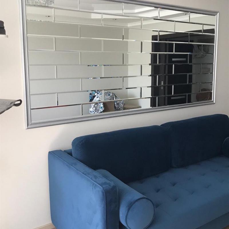 Здесь нет необходимости в дополнительном освещении или расширении пространства. Зеркальное панно играет скорее декоративную роль, о чем говорит, например, оформление его в рамку. Зеркальная картина над диваном словно заменяет собой традиционную живописную. Благодаря расположенной выше подсветке панно будет украшать гостиную не только днем, но и вечером.