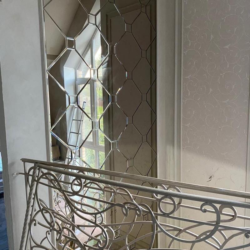 До того, как здесь разместилось панно, спускающийся человек упирался взглядом прямо в стену. Это всегда психологически не комфортно. Зеркало избавляет от эффекта тесноты, поскольку визуально расширяет пространство.